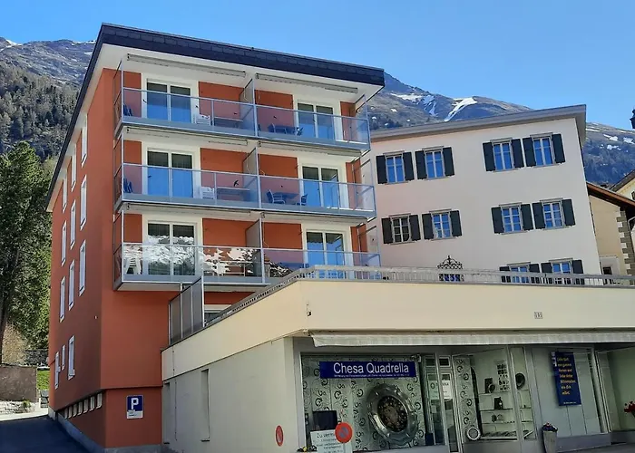 Chesa Quadrella Jedes Zimmer Mit Kuchenzeile lägenhet ligger ca 10 minuters promenad från Pontresinas centrum. Den erbjuder gratis parkering på plats. Ett delat kök samt kylskåp, tvättmaskin och glasföremål finns också här.